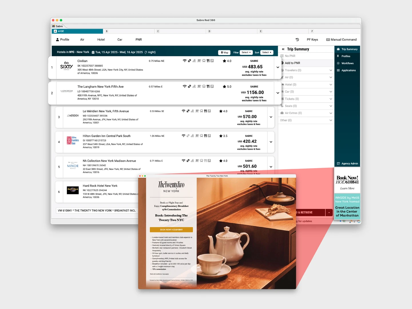 When a traveler searches for an unavailable property, Sabre presents three alternative hotel options. You can secure one of these premium placements to drive bookings