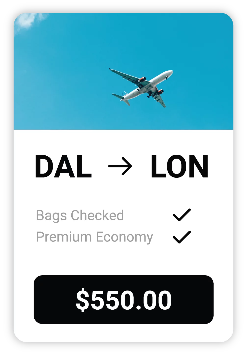 - Bundle flights with hotels, ancillaries, and ground to show the true cost of travel.