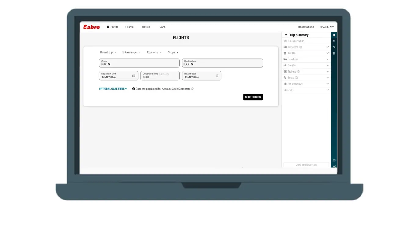 Like other consumer travel applications, Sabre Red Launchpad provides users with a streamlined graphical user interface (GUI) that helps them shop and book basic air, hotel, and car itineraries with only a few clicks.