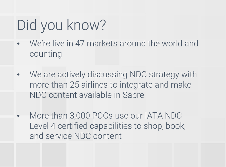 A lot of hard work is now paying off, as NDC bookings flow through the Sabre marketplace.